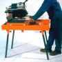 A portable electric bench saw designed for cutting bricks - blocks - large tiles - and slabs. Powerful and easy to use this bench saw is ideal for contractors. Additional Information: The side mounted cutting arm and blade gives "straight through" cutting capacity for long materials. Straight and accurate cutting is achieved using a sliding table fitted with seize free rollers. Powerful - quiet and maintenance free induction motor for fast - effective cutting. Dust free operation from a highly reliable submersible electric pump. Detachable legs for ease of transport and storage. Cutting head can be tilted and raised or lowered for mitre and height adjustable cutting. Long 650mm cut length for cutting materials such as large slabs. Based On: Belle BC 350 Portable Electric Bench Saw Motor Power: 2.2kW Blade Size: 350mm x 25.4mm Blade Speed: 3000rpm Width: 684mm Height: 1379mm Length: 1212mm Weight: 79kg