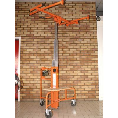 Used for lifting and holding sheets of plasterboard while they are being fitted. This lifter can be operated by one person. Additional Information: The lifter can be locked in place - fits with ease in most standard car boots for easy transportation. Height 3.5m - Weight 48kg - Safe Working Load 65kg. Also known as a Panel Lifter.