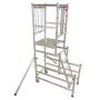 This podium folds away for easier transportation - handling - storage and is a safer alternative to standard steps. Additional Information: The podium is all Aluminium with anti-slip decks and is ideal when wooden components are forbidden. The unit has easy access via the incline ladder - easy to operate gate with integrated locking hook. The handrail height remains 1m above the platform which is the required height. Technical information Based On: Interlink Podium 1500 (also known as a Mk II Podium Steps) Weight: 40kg Platform Heights: 1.25m or 1.5m Overall Height: 2.55m Overall Length: 1.3m Overall Width: 0.9m